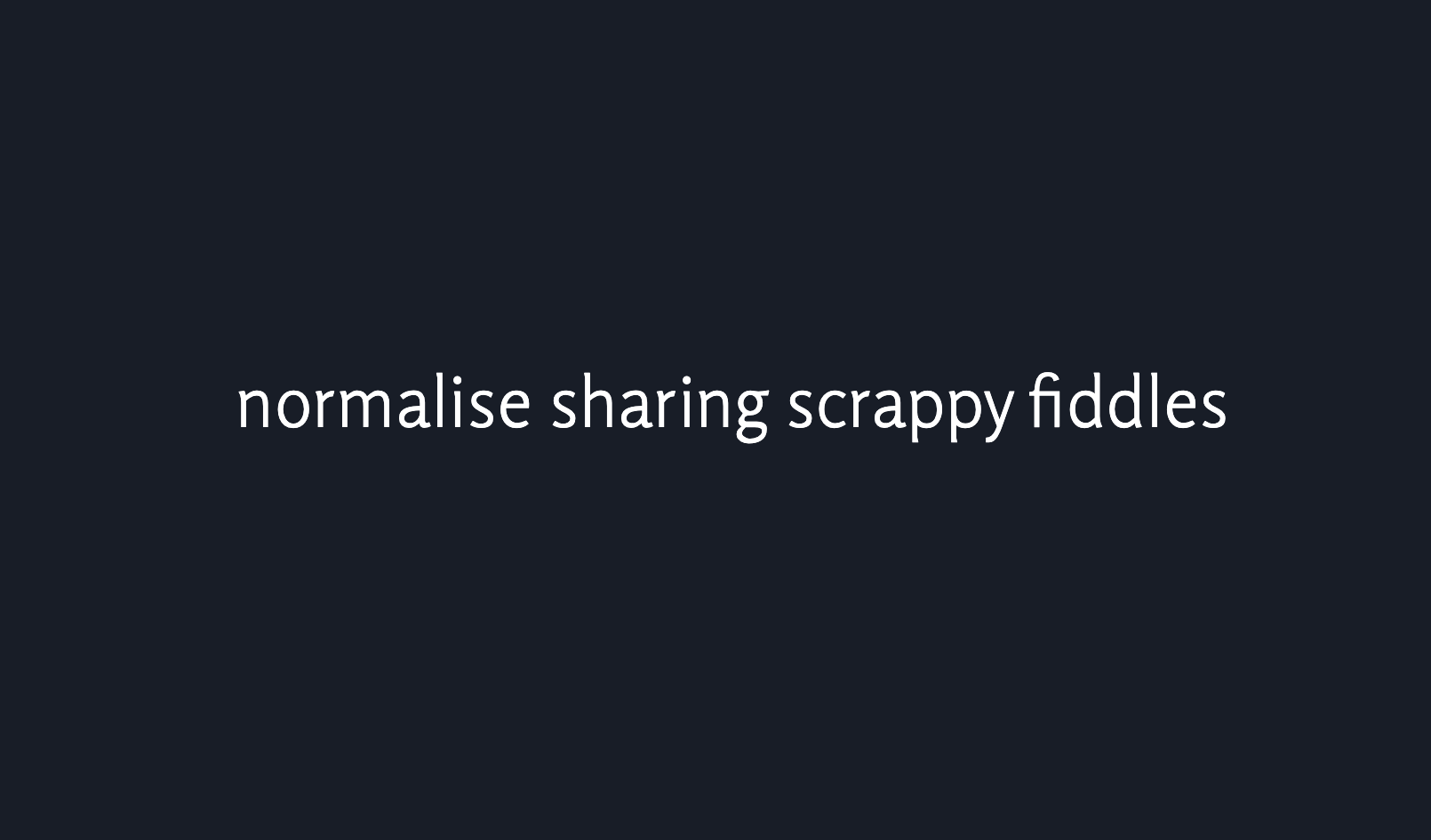Finally, it is worth noting that Arroost, as a tool, is not in a vacuum. Throughout its development, various members of the community contributed to it as an open source project. I introduced a mantra of "normalise sharing scrappy fiddles" which was picked up by community members as a way of encouraging each other to share their work, no matter how bad they thought it was.