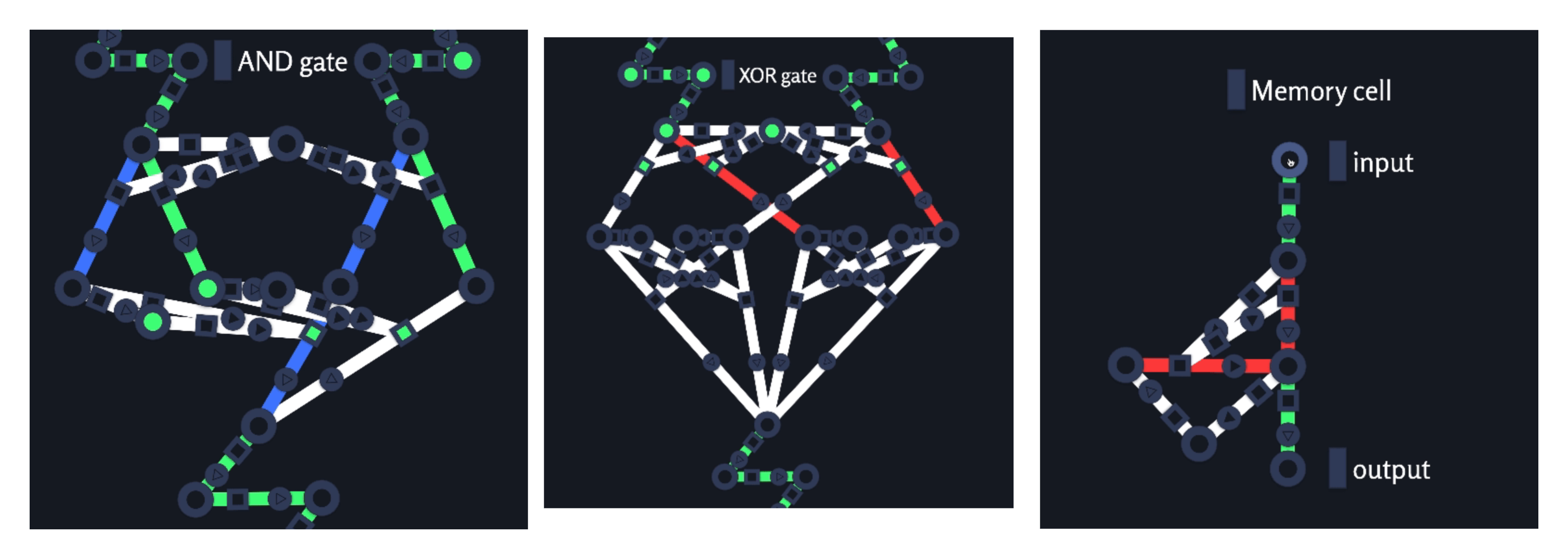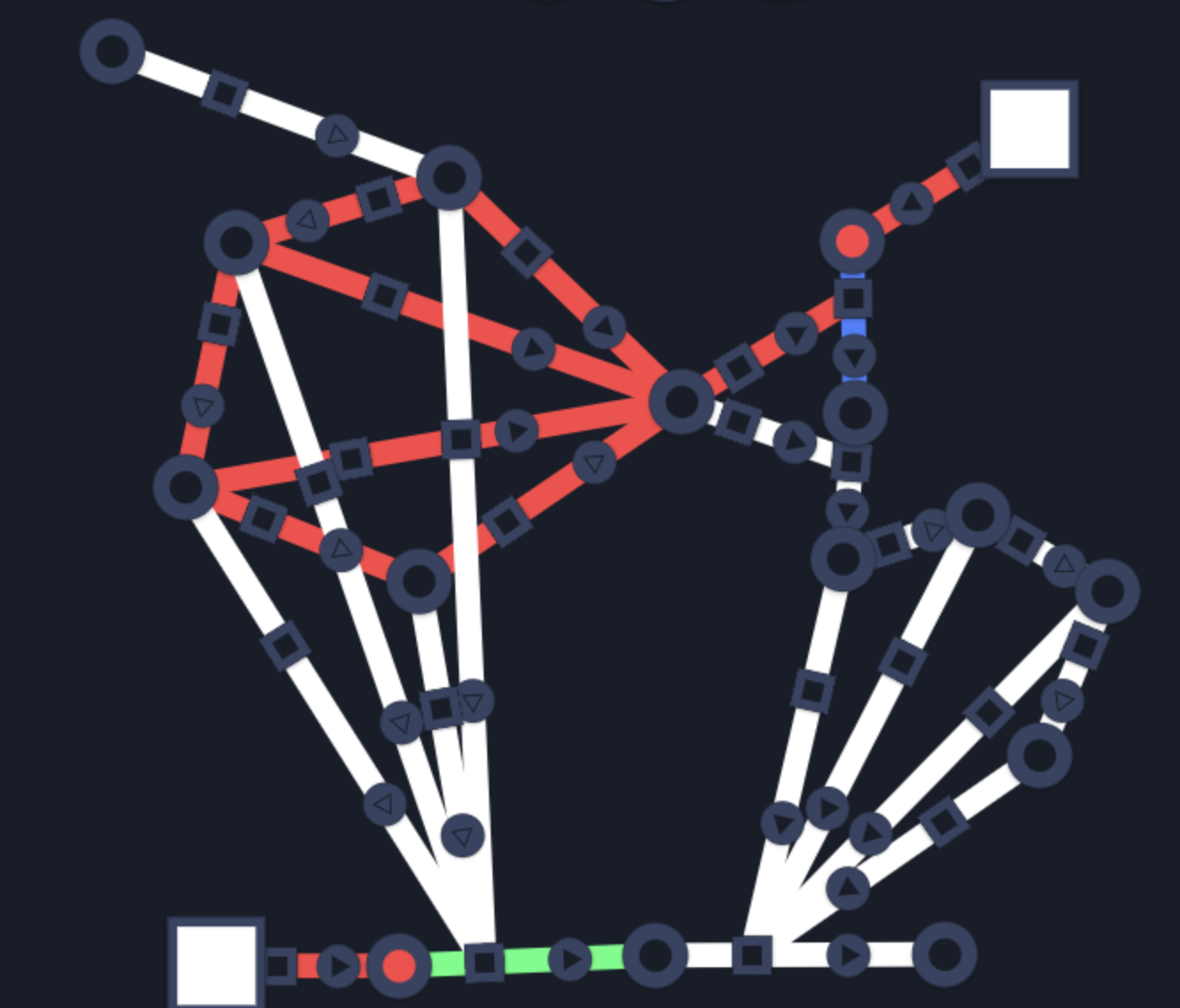 Arroost has many more features that allow for more complex behaviours. For example, you can change the colour of a wire by clicking on the square button.