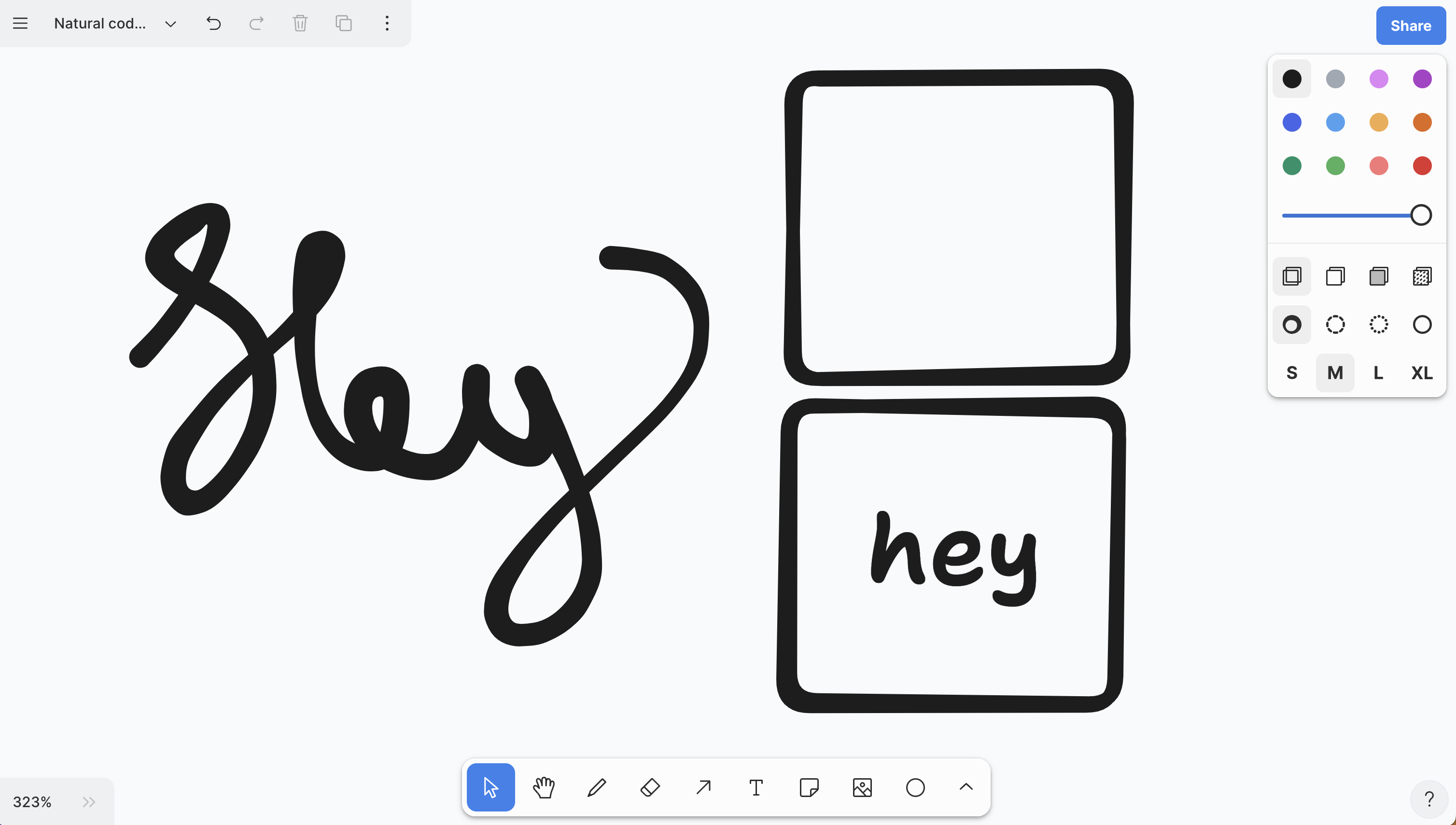 This wonkiness is intentional. tldraw makes it difficult to line up your work perfectly. It's so hard that it stops you trying, and you carry on drawing and writing instead.